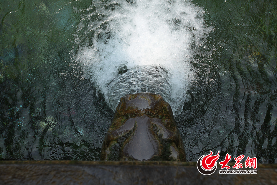 8月14日,黑虎泉噴涌更為強勁,三座虎頭泉水洶涌而。當日,黑虎泉地下水位為28.00米,達到今年以來黑虎泉地下水位的最高值。大眾網記者 王長坤 攝