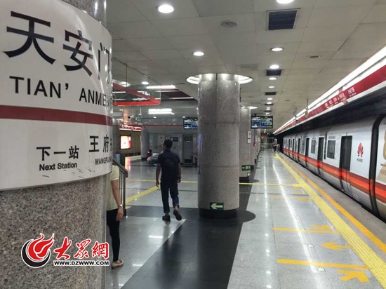 北京地鐵1號線天安門東站,乘客少了很多,站臺上顯得空空蕩蕩。