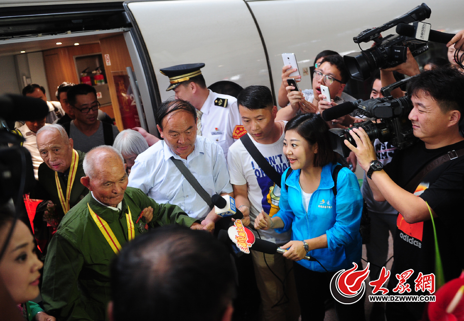 濟南三位參加紀念抗戰勝利70周年閱兵儀式的抗戰老兵及烈屬順利返濟