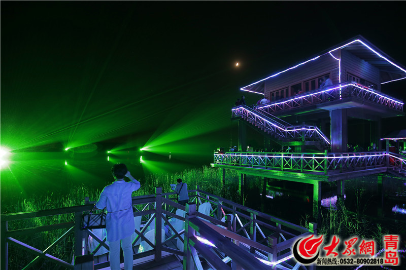 大眾網(wǎng)青島9月21日訊(記者 李佳寧)昨晚七時(shí),在盛大的水上激光秀活動(dòng)中,青島城市(姜山)濕地公園正式開園。本次活動(dòng)以濕地休閑、暢享自然為訴求,融激光、音樂、大屏動(dòng)畫等多重元素于一體,通過激光秀、音樂秀、屏幕秀和《賀休體大會(huì)》、《賞姜山如畫》、《享美好未來》三個(gè)篇章,為國內(nèi)外來賓展演了一場(chǎng)熱烈輝煌、精彩難忘的歡慶晚會(huì)。