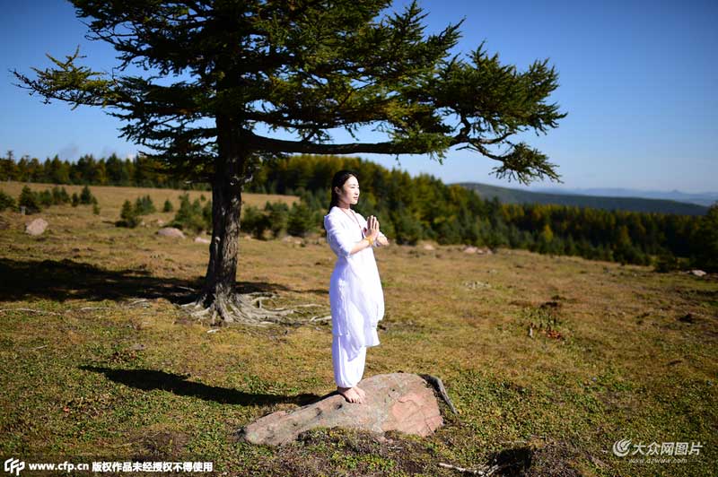 1988年出生于黑龍江一個小山村的東北女孩兒李雨桐,來到山西太原已有四年半時間,做過美容、舞蹈等行業,由于上學時一次對瑜伽的短暫接觸,畢業后她仍不忘瑜伽帶給她的快樂,從此開始專注瑜伽,從事瑜伽教學,現為太原一瑜伽會所的專業老師。出于對瑜伽的熱愛,李老師常常帶著學生一起感受大自然,到不同的地方進行戶外瑜伽課程練習,此次她與學生周宴言,來到海拔2700余米的蘆芽山上,成為過往游客眼中的“山頂瑜伽客”。