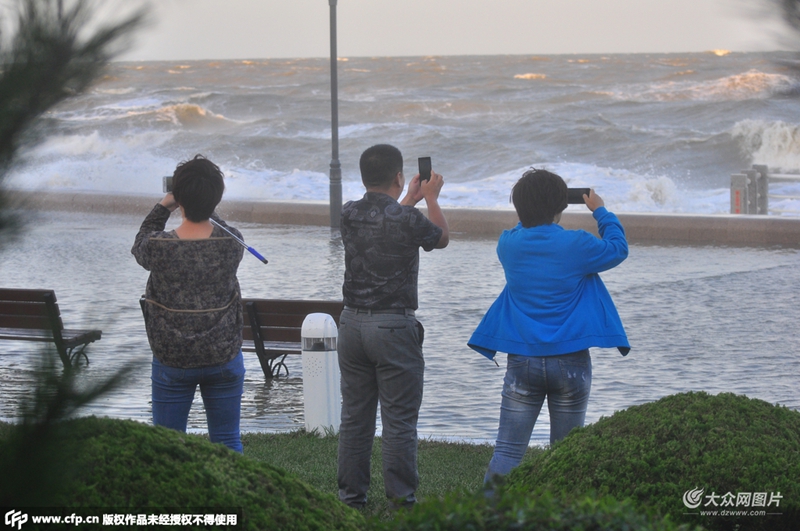 2015年9月29日,山東日照,受今年第21號臺風(fēng)“杜鵑”外圍環(huán)流的影響,日照沿海掀起數(shù)10米高巨大的海浪,吸引了眾多游客冒險拍攝巨浪。