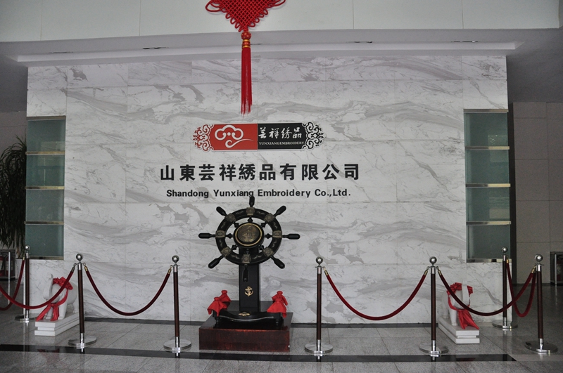 “新常態·新定位·新提升——第十一屆中國網絡媒體山東行”采訪團成員走進山東蕓祥繡品有限公司。圖為蕓祥繡品公司大廳。(王曉青 攝)