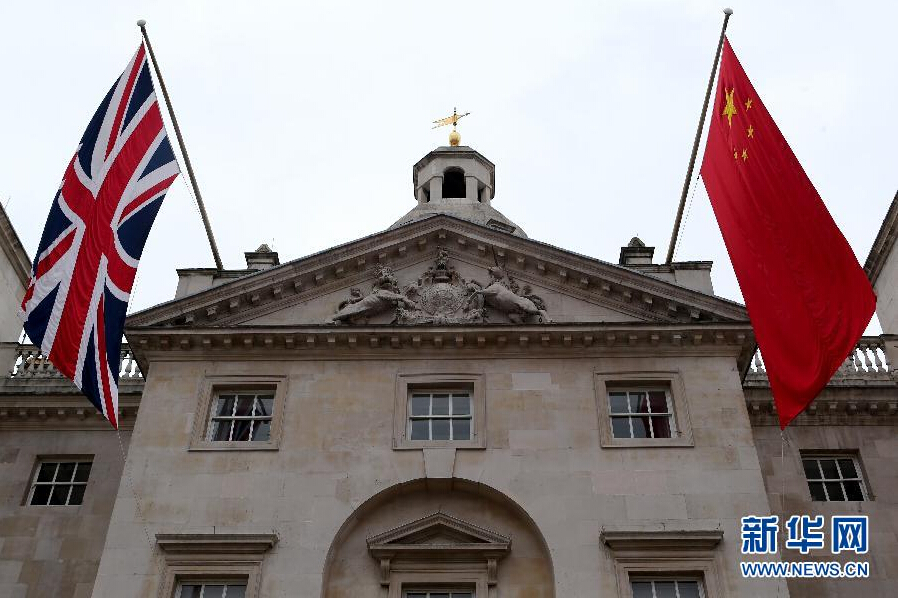 10月17日,在英國倫敦,中、英兩國國旗懸掛在皇家衛隊閱兵場。應英國女王伊麗莎白二世邀請,中國國家主席習近平將于10月19日至23日對英國進行國事訪問。 新華社記者韓巖攝