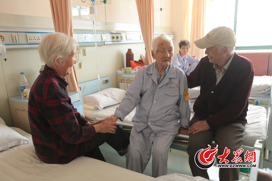 10月20日上午,山東大學(xué)第二醫(yī)院眼科病房內(nèi),濟南108歲老人陳文波和陪伴她的大女兒及大兒子在一起。大眾網(wǎng)記者 王長坤 攝