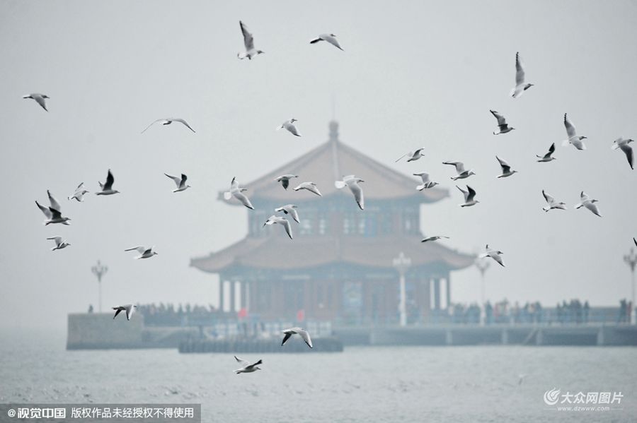 2015年11月08日是立冬,數百只新近遷回的紅嘴鷗在山東省青島市棧橋上空再次與游客“共舞”,不少游客紛紛拿出手機給海鷗拍照。據了解,青島市民每年都會喂食越冬海鷗,在10年內數量增長近50倍,現在每年有10多萬只海鷗遷回青島在近岸越冬,場面蔚為壯觀。