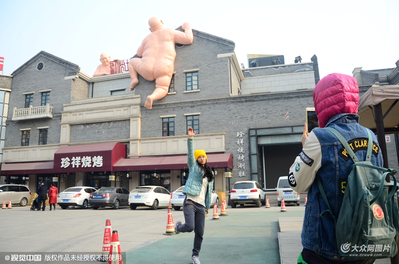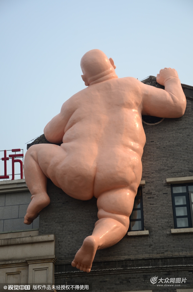 18日下午,網友@濟南同城會發(fā)微博:“18日中午,在歷下區(qū)泉城路紅尚坊院內,兩個雕塑趴在房頂,吸引了不少路人圍觀。眼尖的路人認出,去年年初在同一地點,也上演過同樣的一幕,據稱這是‘快樂的胖子2.0版’,快去圍觀。”在微信朋友圈里,記者發(fā)現也有部分好友上傳了這對雕塑的照片。從網友提供的照片中記者發(fā)現,這對雕塑是兩個沒穿衣服的小頑童一個趴在房頂上,一個攀爬在墻頭,由于顏色為肉粉色,在寒冷的冬季甚是惹人眼球。