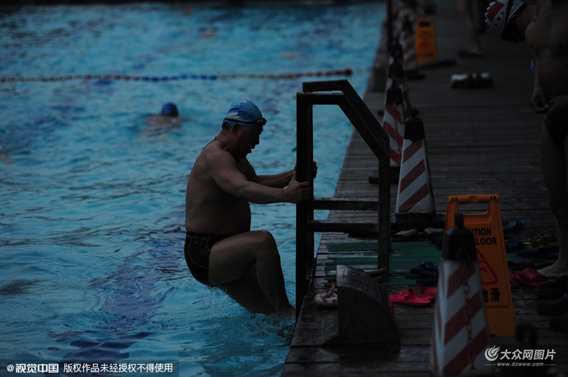 2016年01月11日,山東省濟(jì)南市,雖然氣溫零下10℃,但有些大媽每天雷打不動(dòng),都會(huì)來泉水浴場(chǎng)冬泳。