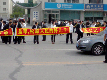 據《中國紀檢監察報》報道,曾當過演員的吉林省人大常委會農業與農村委員會原主任委員藍軍,人到哪里“歌聲飄到哪里”,進京開會時,有人一路陪唱。《法制晚報》記者注意到,其離任松原市時,疑似自導“千人送藍書記”。