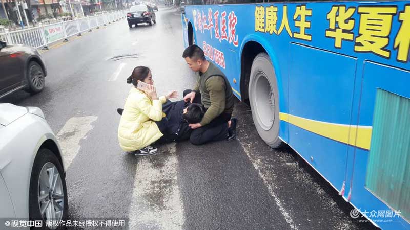 2016年02月06日,貴州省銅仁市區街頭發生感人一幕,一名老人在過馬路時被汽車撞倒在地,神智不清,一名巡邏交警路過,上前跪坐在路中,抱著老人等待急救車。