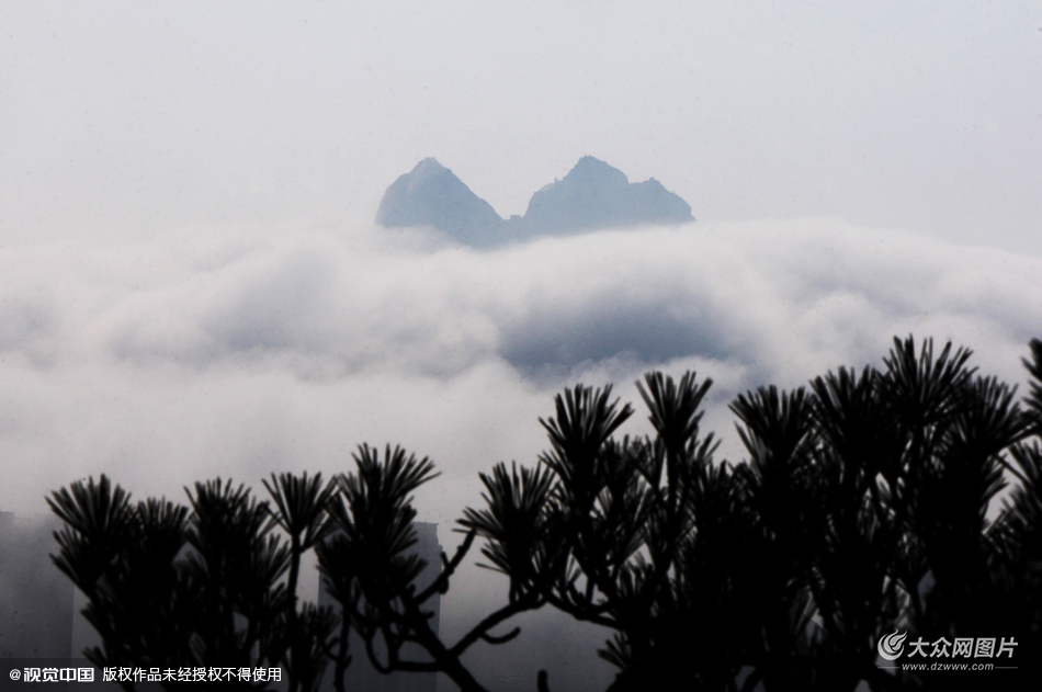 2016年03月04日,山東省青島市,午后,嶗山區出現平流霧景觀,沿海一帶樓宇陷入霧靄之中,仿如海市蜃樓。據了解,平流霧的形成為陸地與海洋的溫差造成,當日青島氣溫飆升至8℃-11℃,因而形成難得一見的平流霧。