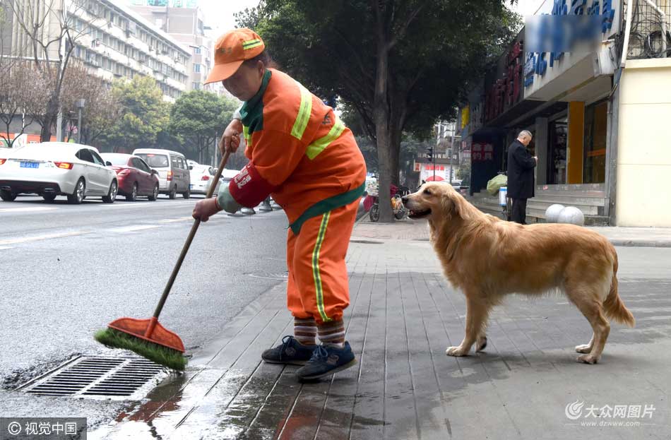 進(jìn)入3月,氣溫回暖,成都市玉沙路上,一幕溫暖了過往行人的場景反復(fù)出現(xiàn)——人行道上,一名環(huán)衛(wèi)大姐躬著背,掃起垃圾,身后,一只金毛狗寸步不離地跟上。一旦瞧見礦泉水瓶,金毛就撲過去,叼起瓶子后,跑回環(huán)衛(wèi)工身邊邀功……