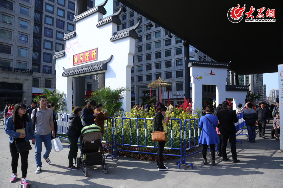 近日,濟南萬達天幕下擺滿了油菜花,引來諸多市民及攝影愛好者前來拍照留念。(亓翔 攝)