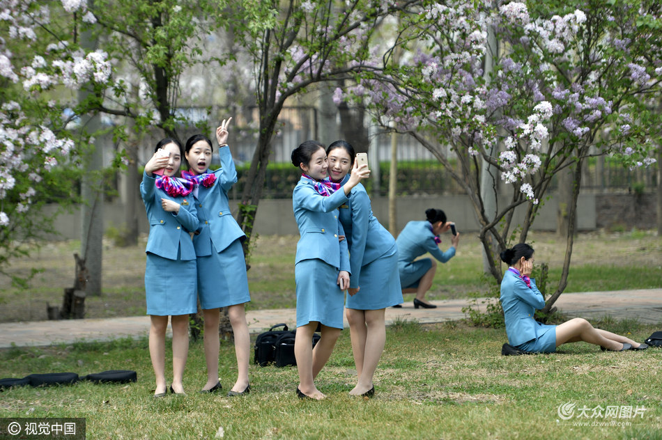 2016年04月06日,天津,“準”空姐換上清新亮麗的春裝,在海棠花下留影。