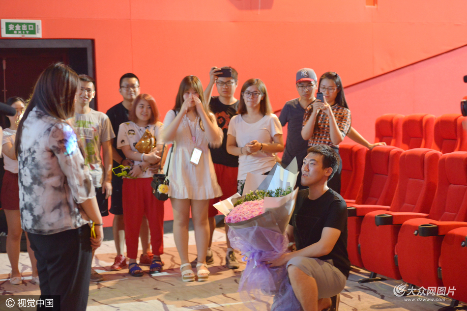 2016年07月06日,山東省濟(jì)南市,90后小伙包場(chǎng)影院浪漫求婚,引女友喜極而泣。