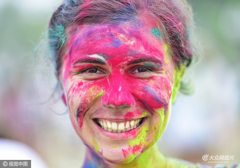 當地2016年8月13日,俄羅斯符拉迪沃斯托克,人們拋撒彩色粉末慶祝胡里節。
