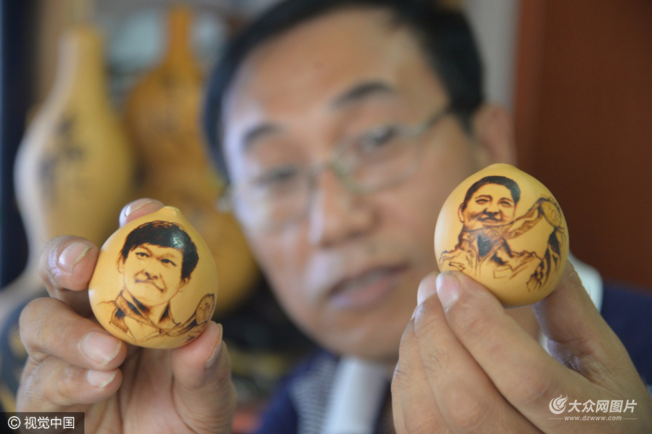 里約奧運(yùn)會(huì)正在舉行,為表達(dá)慶祝我國(guó)奧運(yùn)健兒在奧運(yùn)賽場(chǎng)上取得的佳績(jī),山東省聊城市茌平縣民間藝人季振山用雞蛋葫蘆烙畫(huà)冠軍肖像的方式來(lái)慶祝我國(guó)奧運(yùn)健兒在奧運(yùn)賽場(chǎng)上的驕人表現(xiàn)。他在俗稱(chēng)為雞蛋葫蘆上用電烙鐵繪畫(huà)奧運(yùn)冠軍孫楊、吳敏霞、張夢(mèng)雪等奧運(yùn)冠軍的頭像,以此來(lái)表達(dá)慶祝我國(guó)奧運(yùn)健兒取得的佳績(jī)。目前他的冠軍肖像葫蘆烙畫(huà)創(chuàng)作正在進(jìn)行中。目前,里約奧運(yùn)會(huì)我國(guó)已取得13金、11銀、17銅,總獎(jiǎng)牌居第二位的佳績(jī)。