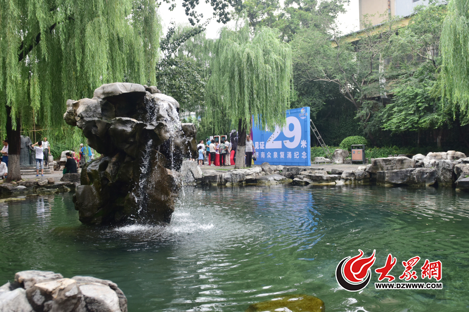8月17日,受近日持續降水的影響,濟南泉群水位攀升,地下水位突破29米大關,位于濟南五龍潭公園內的月牙泉復噴,再現“月牙飛瀑”盛景。(大眾網-山東24小時記者 王長坤 攝)