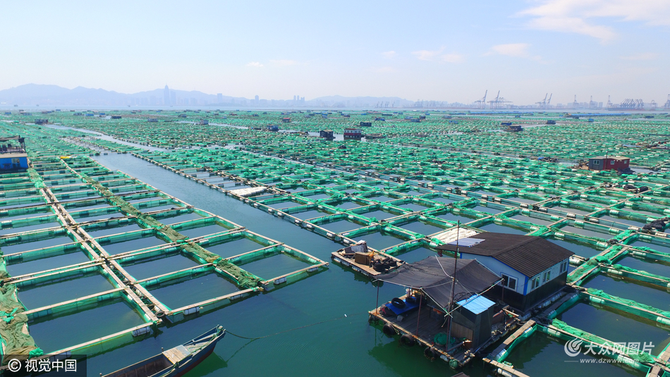 2016年08月22日,山東省煙臺市,從山東省煙臺市芝罘島海域上空俯瞰海產養殖區,星羅棋布的木排浮箱為大海雕刻出精美的圖案。