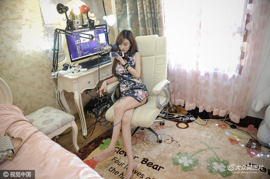 2016年8月19日-26日,天津,走進以粉紅色為基調的房間,空氣中每一個分子仿佛都彌漫著少女心。劉洋坐在電腦前,面向攝像頭對面的普羅大眾侃侃而談。這是一個網絡主播的日常狀態。 2015年春節在家的時候,一位朋友邀請劉洋作為嘉賓,參與一檔游戲的直播,這也是她第一次接觸網絡直播。熱愛游戲的劉洋,隨后也接受朋友的邀請,加入一個文化傳媒公司,試水游戲直播。