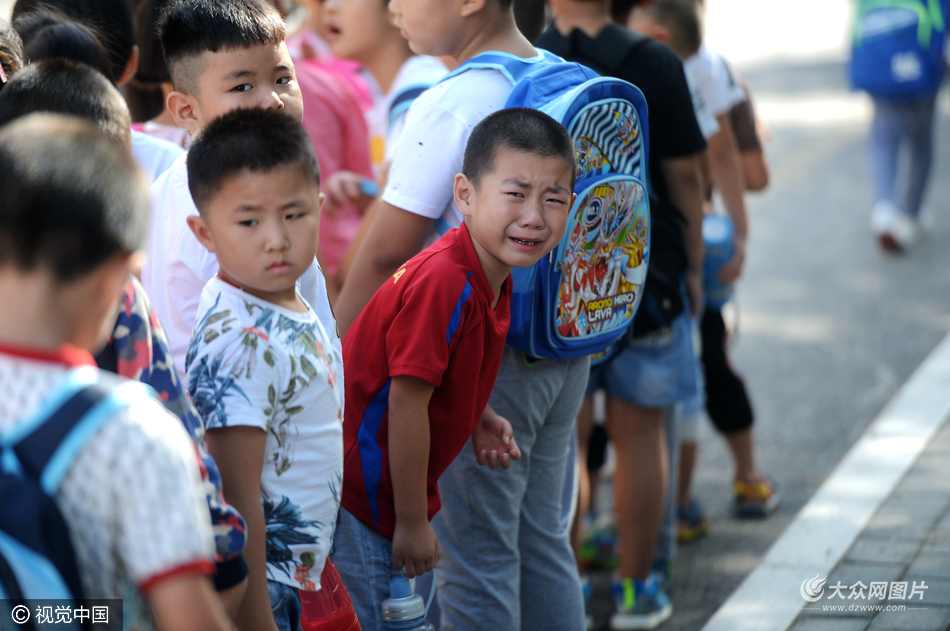 2016年08月29日,濟(jì)南市,小學(xué)一年級(jí)報(bào)到第一天,眾多孩子在家長(zhǎng)的陪伴下,走進(jìn)校園報(bào)到。為了讓新生更快的適應(yīng)校園生活,新生由老師們帶領(lǐng)走進(jìn)校園,而不是往年由家長(zhǎng)陪著進(jìn)教室。不少孩子難舍爸媽?zhuān)械木o緊抱住父母,有的哭成了小淚人。