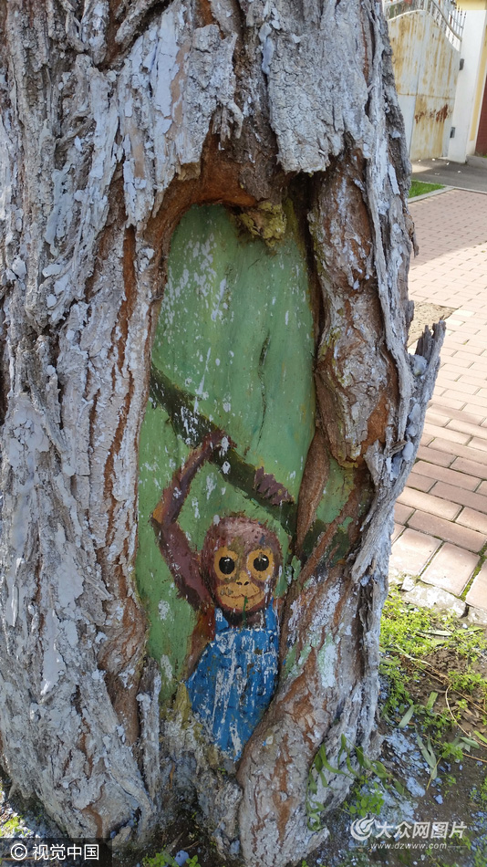 在哈爾濱工程大學校園里,大學生們在一些大樹的樹洞上作畫。經過他們的精心創作,小兔子、狗、熊貓等小動物出現在樹洞里,成為當地一道風景。