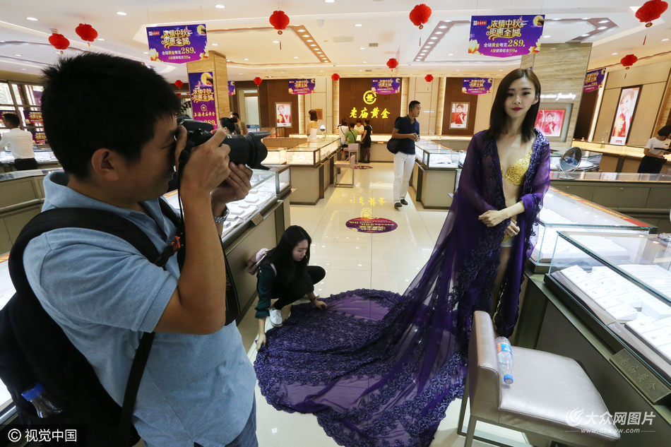 2016年9月17日,山東省濰坊市,模特身著“黃金內衣”在商場進行走秀。當日,山東省濰坊市區一家商場舉辦“百萬黃金內衣秀”活動,模特身穿“黃金內衣”以及手拿各種金飾在商場內進行走秀展示,所到之處吸引了眾人的目光。
