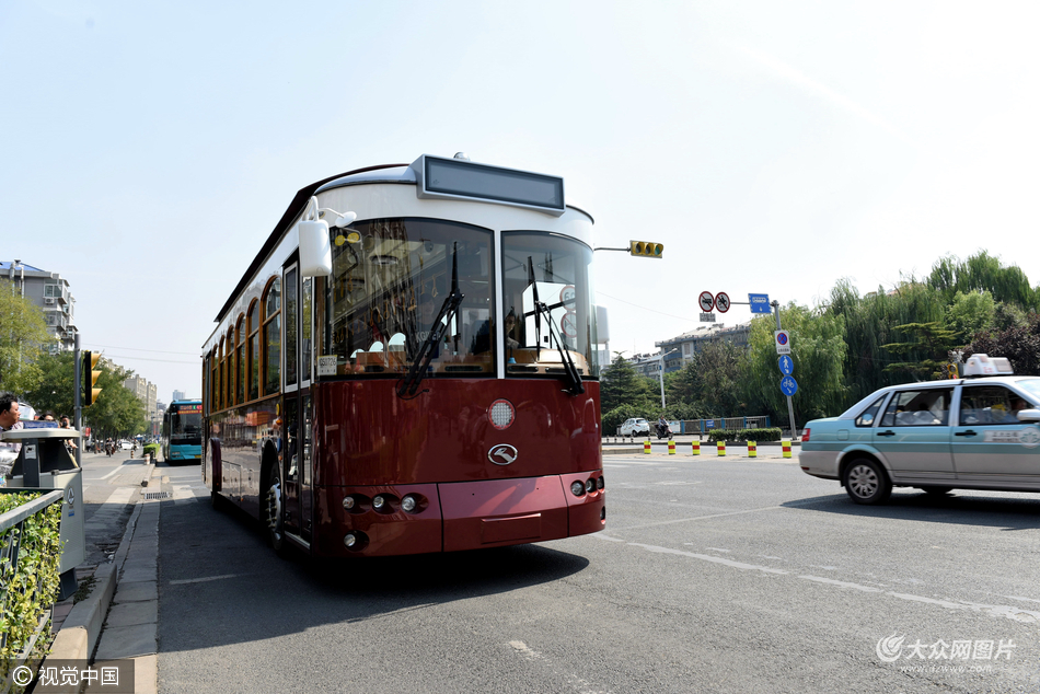 2016年9月20日,在山東濟(jì)南街頭現(xiàn)復(fù)古式的鐺鐺車(chē),這種車(chē)以“夢(mèng)回濟(jì)南府”為主題,外形采用民國(guó)時(shí)代機(jī)車(chē)傳統(tǒng)造型,內(nèi)飾采用中式屏風(fēng)、仿古家具、濟(jì)南老照片,穿越式體現(xiàn)濟(jì)南千年古城的深厚底蘊(yùn)和泉水文化。