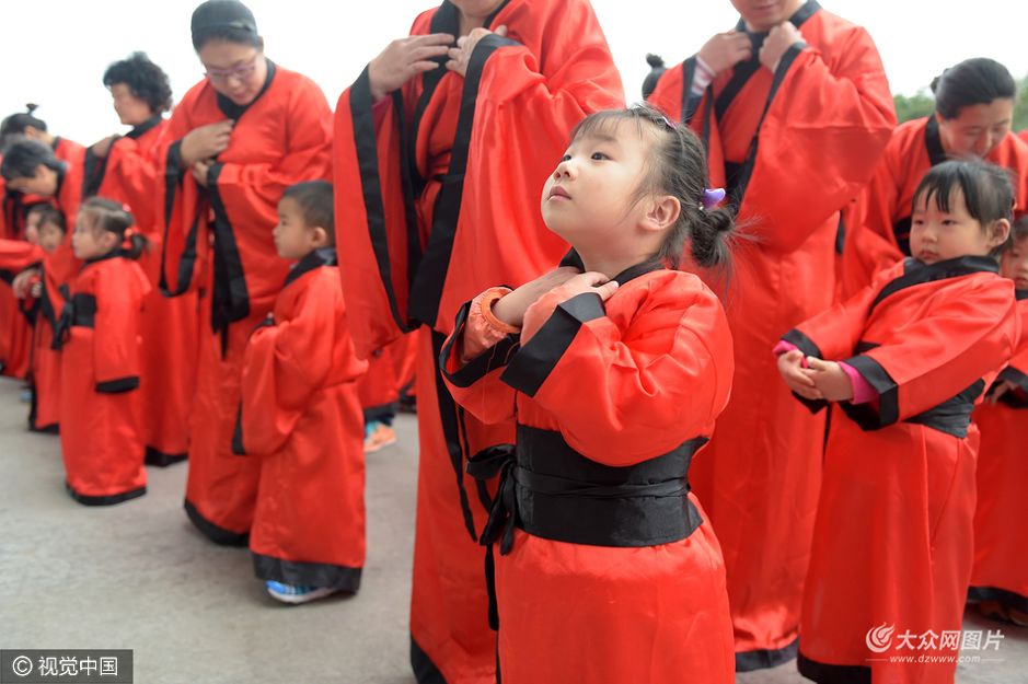 10月27日,一場別開生面的學童入泮禮在青島國信體育場舉行,來自軍藝幼兒園的60多名小學童現場行拜孔禮、拜師禮、開筆禮,感受國韻雅禮。