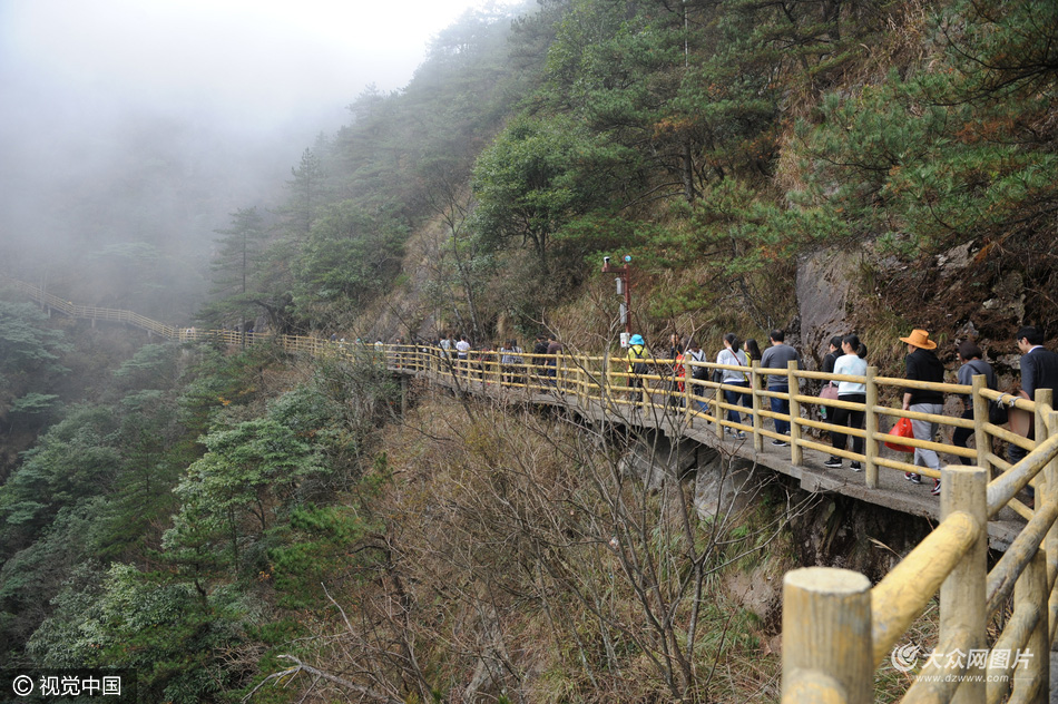 2016年11月19日,江西宜春,明月山棧道云霧中穿行驚險刺激。