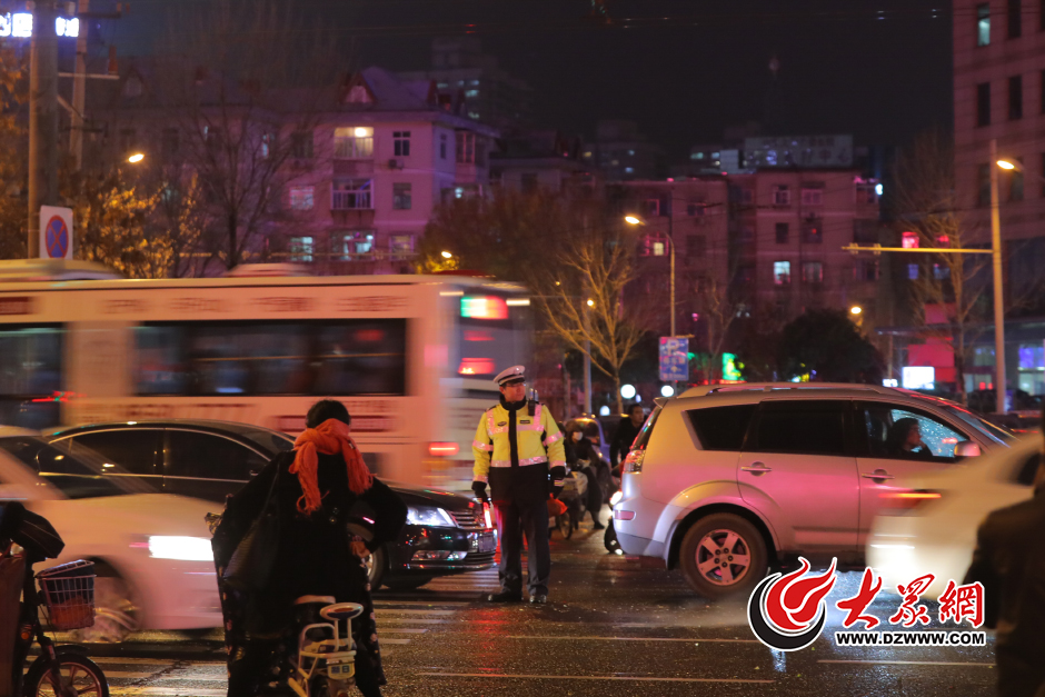 11月21日,受較強(qiáng)冷空氣影響,泉城濟(jì)南出現(xiàn)持續(xù)降雨。傍晚5時(shí),濟(jì)南市區(qū)烏云壓境,街頭狂風(fēng)大作,一名交警在風(fēng)雨中指揮交通。據(jù)濟(jì)南氣象局各監(jiān)測(cè)點(diǎn)實(shí)時(shí)監(jiān)控,今天下午17時(shí),市區(qū)大部分地方氣溫已降至3度以下。大眾網(wǎng)記者 王長(zhǎng)坤 攝