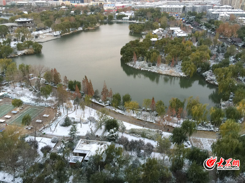 昨晚,濟南今冬首場雪降下。今晨,泉城的雪景刷爆了市民們的朋友圈,記者來到大明湖看到,這里已是銀裝素裹。記者王長坤 攝