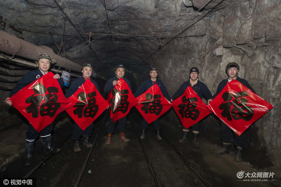 2017年01月23日,山東省濟南市東部的濟鋼鋼城礦業公司-360米礦井內,采礦車間的礦工們張貼對聯、福字,喜迎新春佳節的到來。