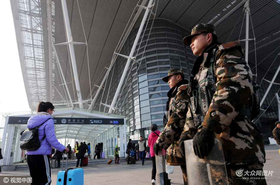 24日,2017年春運已是第12天,返鄉的客流進入高峰階段,青島邊防支隊剛剛下連隊不到20天的兩名99后新兵開始了他們入伍后的第一次春運安保執勤。17歲的鎖飛翔來自安徽阜陽,回族,與他同齡的戰士徐文豪來自濟南,兩人同一時間入伍,又同是第一次執勤春運安全保障。從早上8.30出勤到晚上8.30收隊,他們要在青島北站來回巡邏12個小時,一天約走出12公里的路途。他們默默無聞,在車站的一隅保障著旅客的安全。同時,車站也是他們的臨時“戰場”,堅守一線,為春運保駕護航。