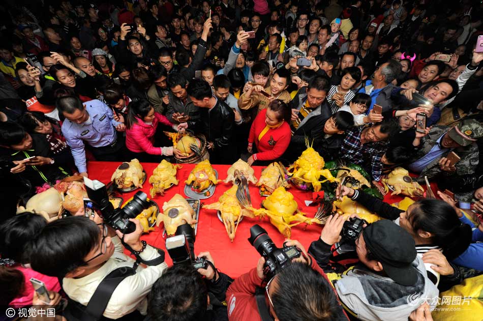 2017年02月11日,海南省瓊海市博鰲鎮(zhèn)樂城村,迎神賽肥雞吸引了大量的市民和游客。