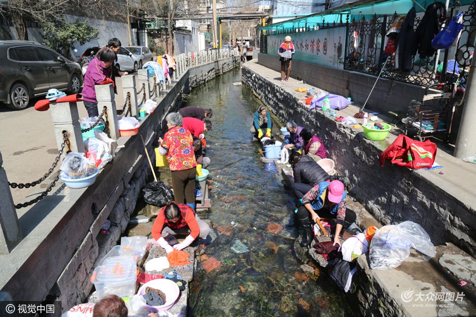2017年3月8日,濟(jì)南五龍?zhí)陡浇粭l清澈見(jiàn)底的河道內(nèi),市民大盆小盆排隊(duì)洗衣服,據(jù)周圍市民了解得知這條河水是從五龍?zhí)读鞒龅娜忻駥?duì)此行為感到惋惜,希望有關(guān)部門能盡快管理起來(lái)。