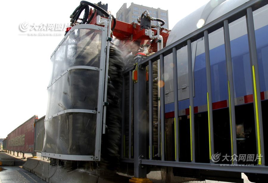 大眾網濟南3月9日訊 今天上午10點左右,大眾網記者在濟南經十西路大金莊路口發現,一輛造型奇特的清洗車緊貼護欄右側行駛,正在清洗經十路中間護欄,清洗過后的護欄光亮如新。大眾網記者注意到,這輛帶水罐的清洗車緊貼護欄右側行駛,有專人操作清洗裝置。清洗裝置的機械臂向左伸出車體,機械臂上的四個圓柱形滾掃器在護欄兩側高速轉動,同時有噴頭向護欄噴灑水霧。槐蔭交警大隊交通科科長謝希甫告訴大眾網記者,這輛專用清洗車車是槐蔭區城管部門今年剛買的,目前濟南市僅有兩臺。(大眾網-山東24小時客戶端記者 賀輝 通訊員 路文生)
