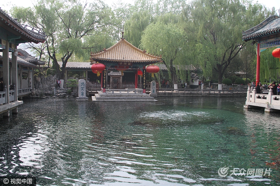 2017年4月12日,在山東濟南趵突泉景區,趵突泉水位跌破了28米橙色警戒線,到了27.98米。據了解,這也是從去年夏秋季以來的最低水位。一位路人笑稱水位備受市民的關注,如同關注股票漲跌一樣。