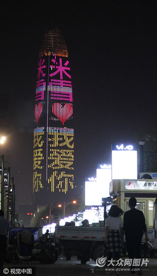 濟南第一高樓點亮巨型字幕吸眼球