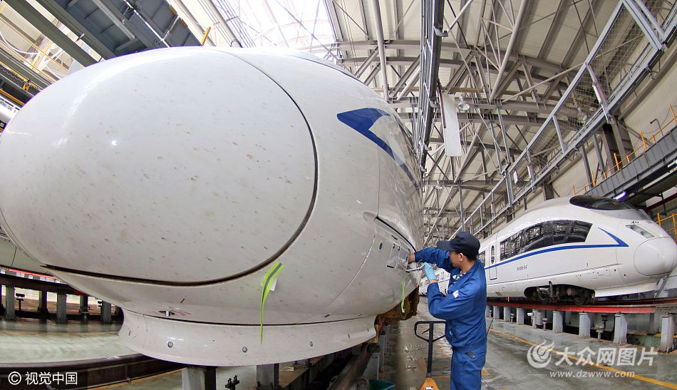 2017年4月15日,青島。濟南鐵路局青島北動車所是膠東地區唯一的動車檢修運用單位,承擔著123列動車組的檢修運用工作,其動車存車場擁有40多條股道供高鐵動車組“休息”,6條股道供動車組“體檢”。
