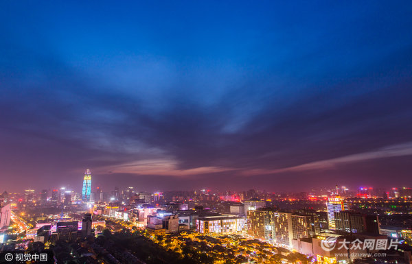 濟南夜景色彩斑斕 藍天晚霞美景如畫