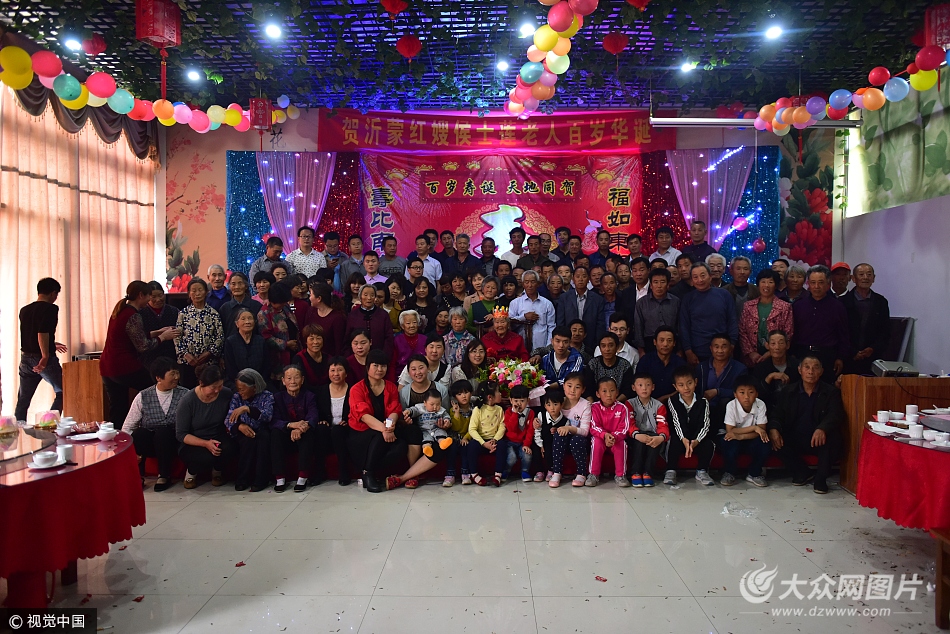 臨沂一百歲老人過壽 五世同堂上百子孫賀壽