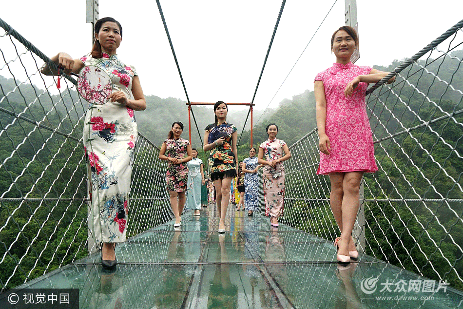2017年5月20日消息,在廣西柳州市融水苗族自治縣雙龍溝景區(qū),百余名美女身穿傳統(tǒng)旗袍,擺出優(yōu)美姿勢,展示靚麗青春,歡慶該景區(qū)舉辦的首個“520”表白節(jié)。