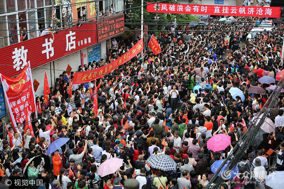 2017年6月5日,安徽六安金安區毛坦廠鎮,素有“亞洲最大高考工廠”之稱的毛坦廠中學再度迎來傳統的“送考節”。供圖:視覺中國