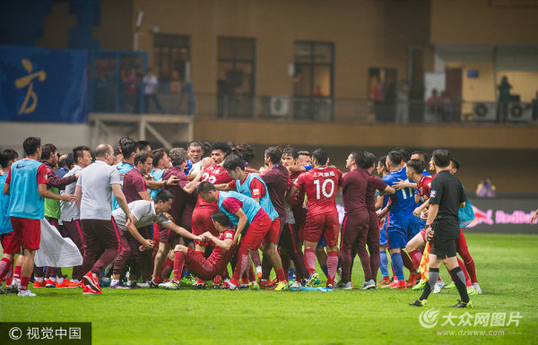 中超賽場爆發大規模沖突 富力上港球員互毆