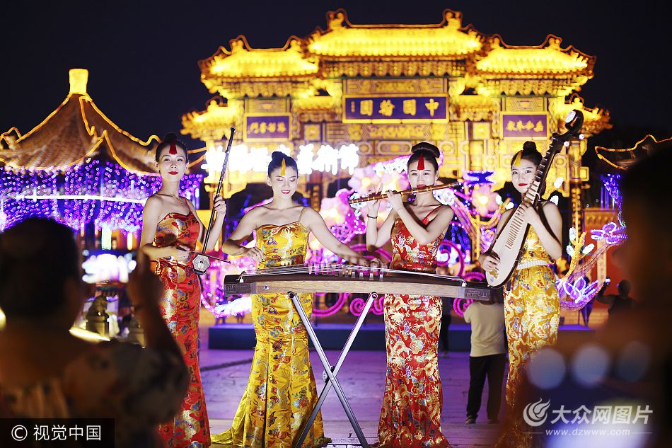 2017年6月30日,河南開(kāi)封一景區(qū)門口迎來(lái)了除游客之外的新來(lái)客,四位身著中國(guó)風(fēng)旗袍的美女大學(xué)生在此開(kāi)起了小型演奏會(huì),引得眾人圍觀,一些大媽看后爭(zhēng)相與美女們合影。