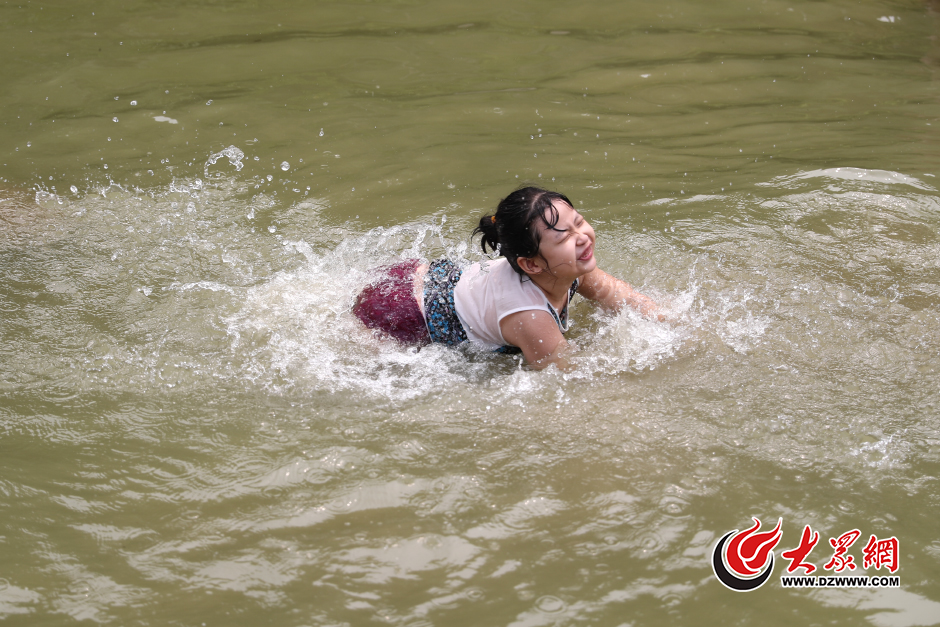 7月4日,山東濟南,兒童在在泉水浴場旁的沙灘區(qū)跳水消暑。當日,山東省氣象臺繼續(xù)發(fā)布高溫黃色預警信號,今明兩天最高溫35度。天下第一泉景區(qū)內的泉水浴場已為市民恢復開放,泉水浴場成為市民納涼消暑的第一選擇。大眾網記者 王長坤 攝