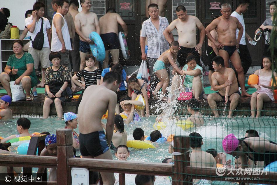 2017年7月12日傍晚,在濟(jì)南解放閣旁的免費(fèi)泉水浴場,里面人滿為患如同“下餃子”,外面眾多市民在門外排隊(duì)苦等進(jìn)入游泳,現(xiàn)場十分壯觀。