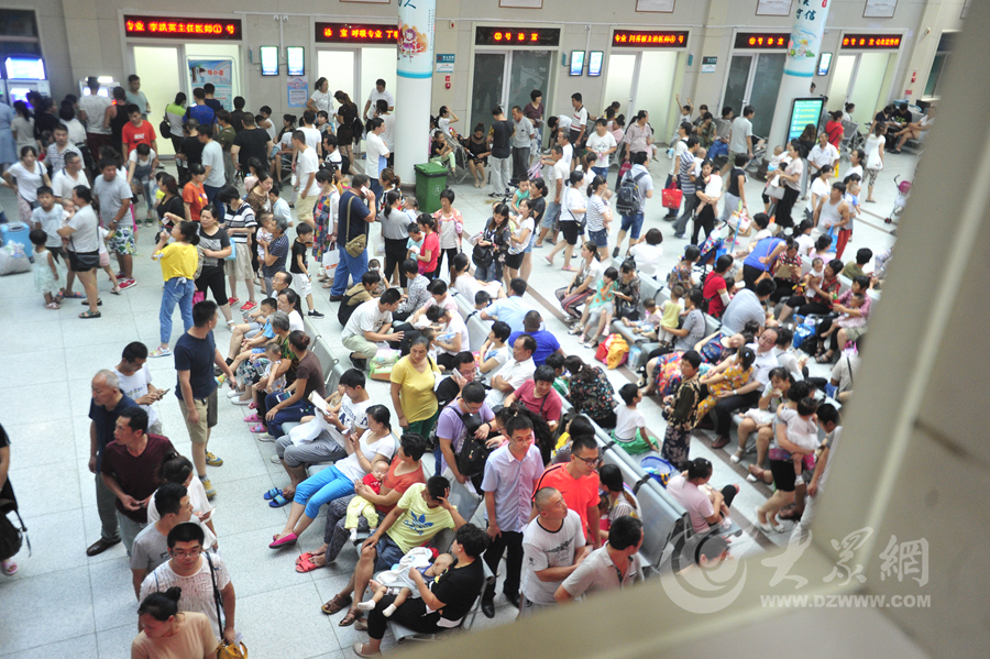 大眾網(wǎng)濟(jì)南7月26日訊 26日,在濟(jì)南市兒童醫(yī)院,許多家長帶著患兒排隊(duì)等候就診。隨著各地學(xué)生陸續(xù)開始放暑假,濟(jì)南市兒童醫(yī)院再次迎來暑期就診高峰。記者了解到, 其中不少小患兒是因?yàn)殚_空調(diào)導(dǎo)致的感冒發(fā)燒等癥狀。醫(yī)院醫(yī)護(hù)人員提醒大眾,暑期要做好防暑和防治空調(diào)病的準(zhǔn)備。在空調(diào)頻繁開放的季節(jié),應(yīng)該經(jīng)常開窗換氣,最好兩小時(shí)換一次。(大眾網(wǎng)-山東24小時(shí)客戶端記者 王長坤 攝)