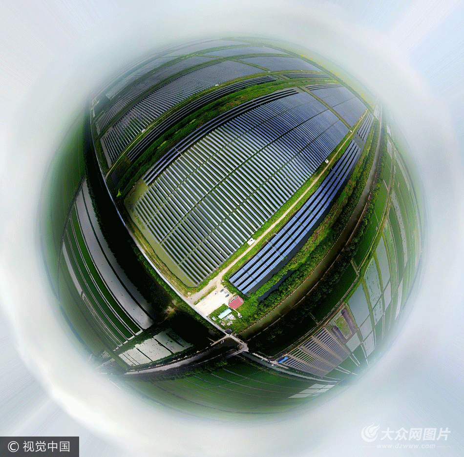 2017年7月30日訊,湖北荊州江陵縣三湖管理區,航拍協鑫100MW漁光互補光伏電站,該項目租用2800畝漁場建成,規模100MW,投資近10億元。當天上午有霧,無人機航拍時,突然有一束陽光射到正下方漁光互補光伏電站的一角,給鳥瞰畫面增添了亮點。
